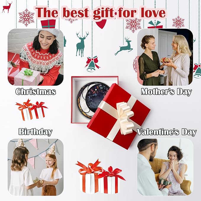 - Meaningful Gifting: Looking for a memorable gift? These stained glass suncatcher are a perfect choice. Whether for a housewarming, anniversary, or birthday, they convey thoughtfulness and elegance. Each piece can evoke emotions and memories, making it not just a decorative item but a sentimental keepsake that the recipient will cherish for years to come.β