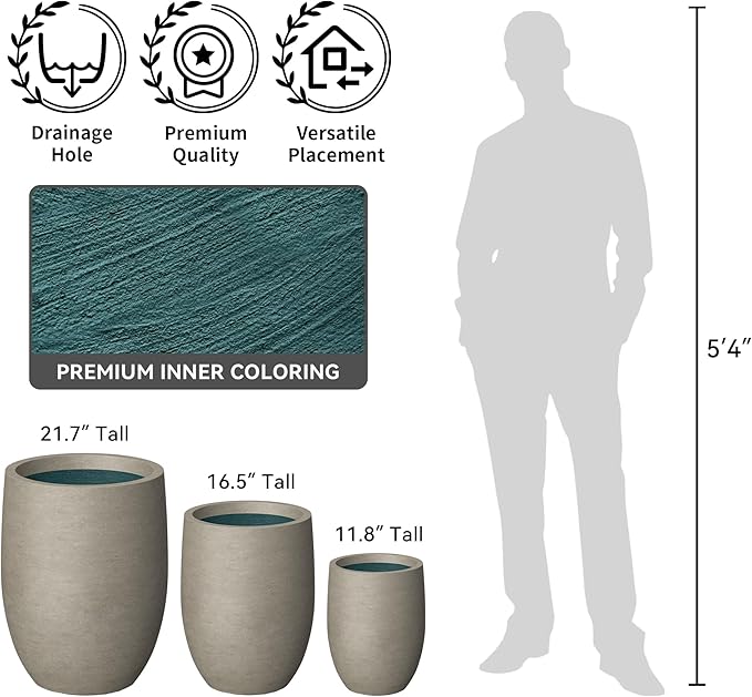 - Ample Planting Space β Generously dimensioned to offer ample room for healthy plant development, this planter is ideal for a diverse range of plants, from trees and shrubs to succulents and flowers. Its spacious interior ensures that roots have plenty of space to grow, while its versatility makes it a perfect addition to both gardens and home settings, enhancing any space with lush greenery.