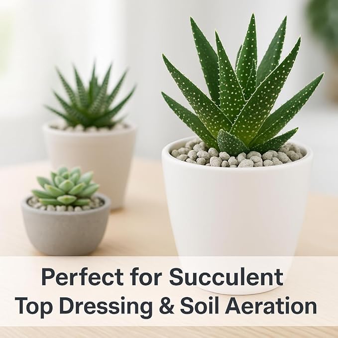 - π Easy-to-Use & Economical β Effortlessly mixes into any potting soil or garden bed. Optimized size (3/8β1/4 inch) is versatile and aesthetically pleasing, suitable as a succulent top dressing, drainage rocks for potted plants, and bonsai rocks.