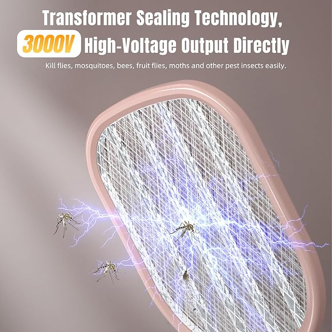 Electric Fly Swatter Racket 3000V Bug Zappers, Mosquito Zappers USB Rechargeable, 1200mAh Mosquitoes Killer Lamp & Fly Zappers with 3 Layer Safety Mesh for Home, Bedroom, Kitchen, Patio (2Pack-Pink)