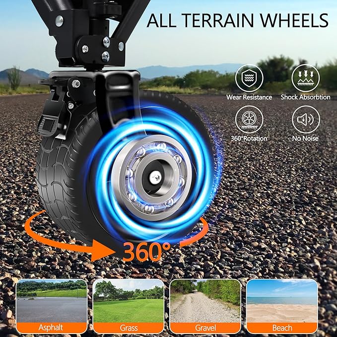 - All-Terrain Big Wheels for Smooth Rides: Our wagons carts foldable design features wide, heavy-duty wheels that glide effortlessly over sand, gravel, grass, or pavement. A true beach wagon with big wheels for sand, it ensures easy transport during camping trips, festivals, or beach days.