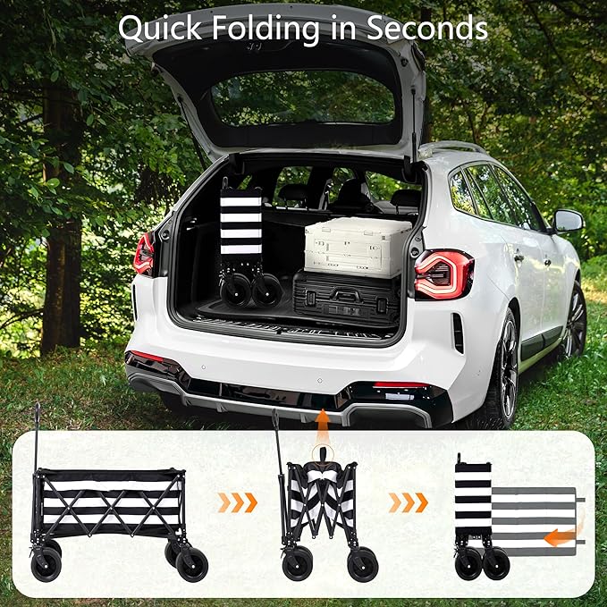 Wagons Carts Foldable with All-Terrain Big Wheels 400 LBS, Heavy Duty Collapsible Utility Wagon Cart, Folding Grocery Cart for Beach, Camping, Sports, Shopping, Garden and Fishing-Black Stripe