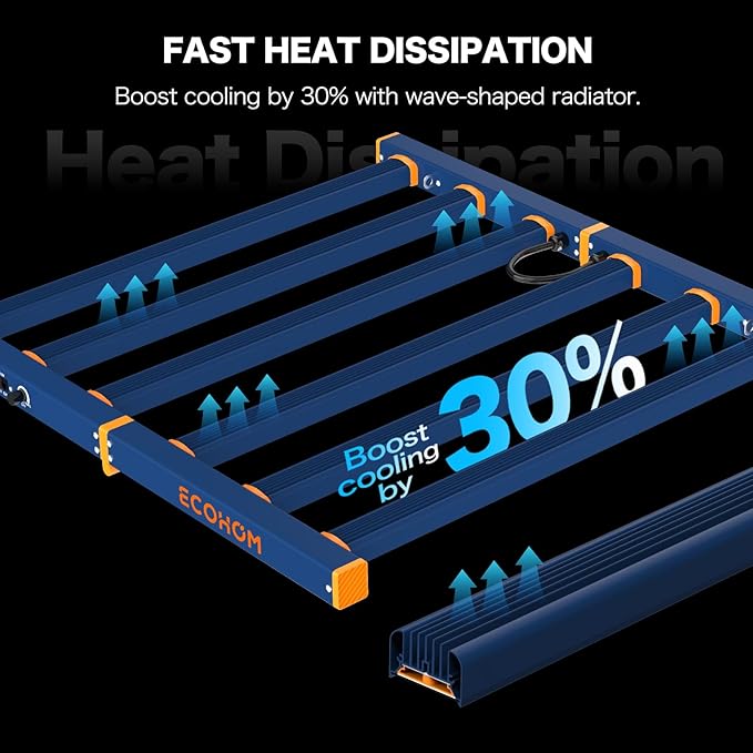 - 【Efficient Heat Dissipation Design】 The grow light design and aluminum heat sink on the back facilitate air circulation and rapid heat dissipation. Reduce ambient heat in the growing space. The foldable design of our grow light no need to assemble. Save your time and space during installation, storage, transportation.