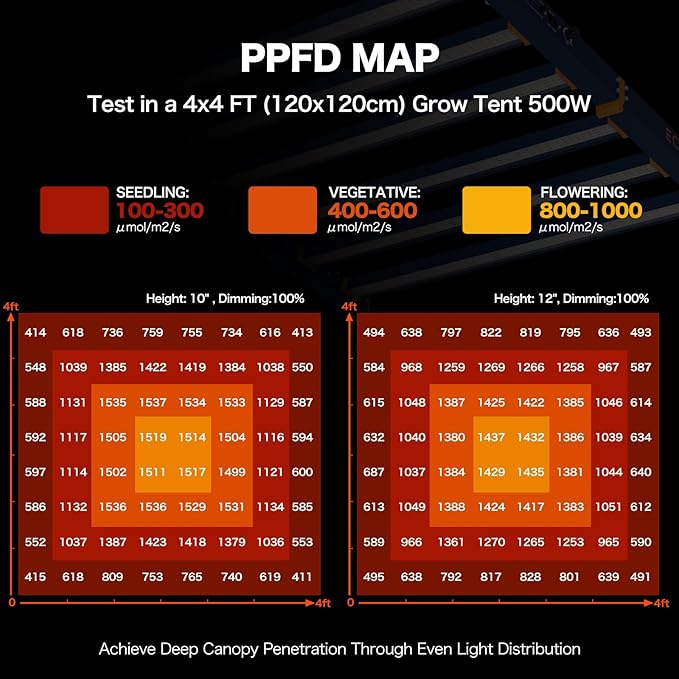 - 【High Efficiency and Energy Saving】 The 500W led grow light is highly energy efficient. market-leading 2.8µmol/J PPE, Max 2.5g yield/watt, 500 watt with smaller footprint for better crop quality, more cost-effective. Our grow light can save more energy while maximizing plant growth and yield.