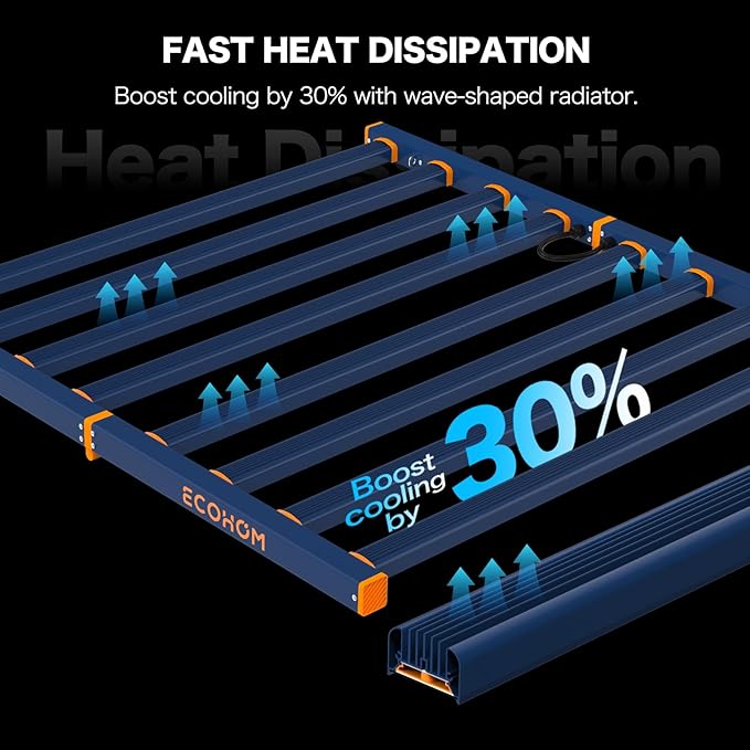 - 【Efficient Heat Dissipation Design】 The grow light design and aluminum heat sink on the back facilitate air circulation and rapid heat dissipation. Reduce ambient heat in the growing space. The foldable design of our grow light no need to assemble. Save your time and space during installation, storage, transportation.