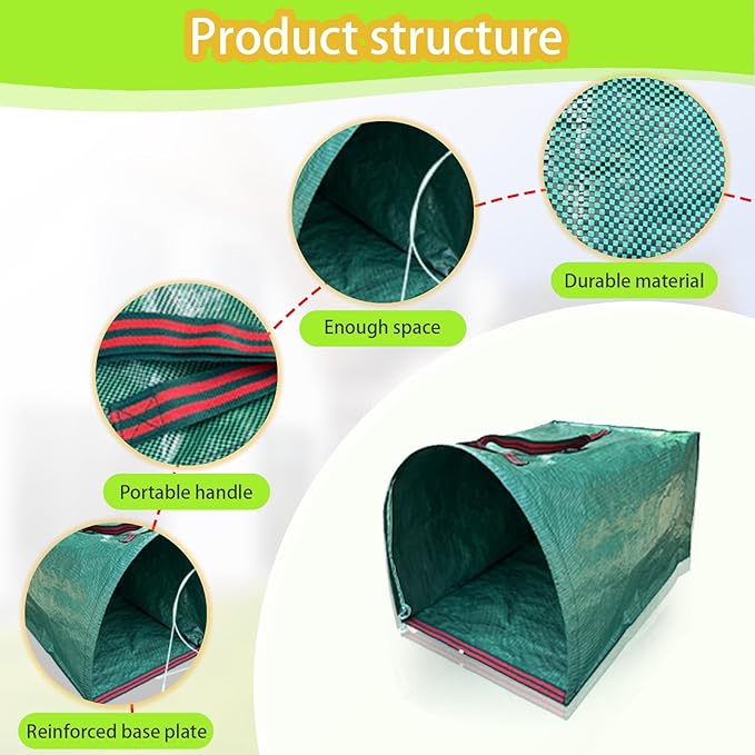 - Space-Saving Collapsible Design:Collapse flat when done—this collapsible yard waste bag stores neatly in sheds. Saves space while keeping reusable lawn bags ready for next use.