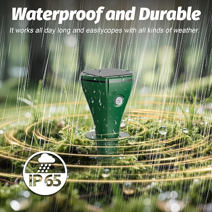 - 【Eco-Safe & Pet-Friendly Operation】:Employs targeted high-frequency waves to repel moles, voles, and burrowing pests. The ultrasonic frequencies are scientifically proven safe for birds, pets, and humans. Non-invasive, it preserves your garden’s ecological balance.