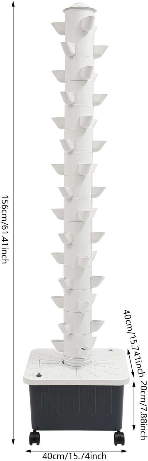 Hydroponics Tower | 15 Layer 45 Plants Indoor Vertical Tower System Kit | Vertical Hydroponic Grow Tower Aeroponic Tower for Herbs | with Pump and 7.93 GAL Water Tank | 4 Wheels | White
