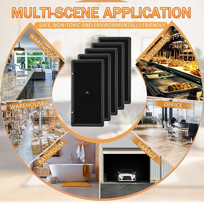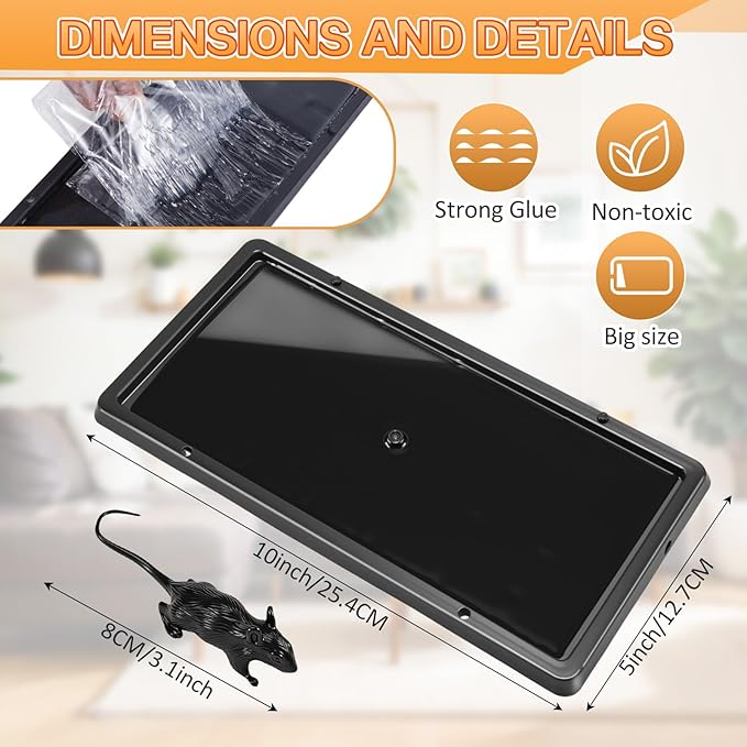 - Full Scene Coverage: these glue traps for rats can flexibly adapt to narrow spots for year-round protection, 5 Γ10-inch golden size (easier to fit into gaps than large panels), can be cut to fit corners, pipes, and the back of cabinets; Nice combination of 10 pieces sticky boards for mice and 6 pieces fake mouse, long-term coverage of kitchens/warehouses/garages/garages, prevent recurrence of rat infestation