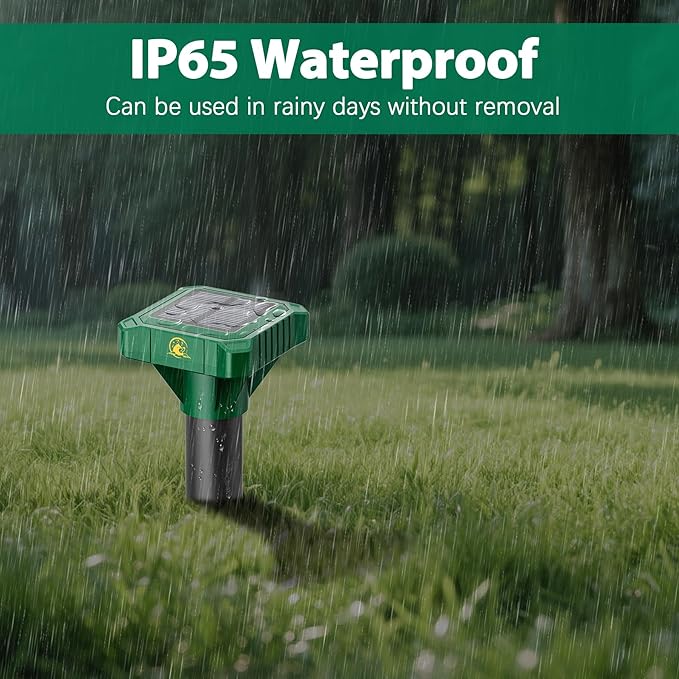 - Weather-Resistant Design: Constructed from high-quality ABS material with an IP65 waterproof rating, this chipmunk repellent is built to last through rain, snow, and tough outdoor conditions. Whether you use it in your garden, yard, or farm, it delivers reliable performance year-round.