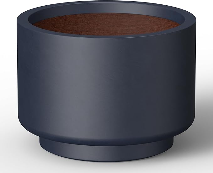 Kante 15.7 Inch Dia Concrete Planter, Round Pedestal Design Garden Pot for Indoor Outdoor Plants, Modern Flower Pot with Drainage Hole, Charcoal Finish with Warm Brown Interior