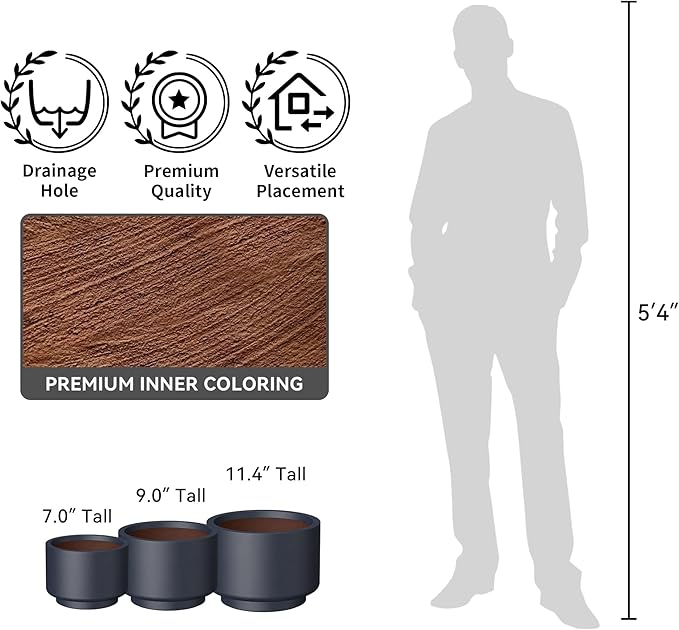 - Ample Planting Space β Generously dimensioned to offer ample room for healthy plant development, this planter is ideal for a diverse range of plants, from trees and shrubs to succulents and flowers. Its spacious interior ensures that roots have plenty of space to grow, while its versatility makes it a perfect addition to both gardens and home settings, enhancing any space with lush greenery.