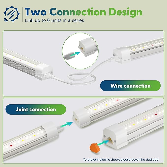 - Robust Cover & Soft Glow: This T8 grow light for plant shelf, shielded by a transparent PC cover, offers robust LED protection, reducing the risk of dead lights and the hassle of frequent replacements. Enhanced with clear bright panel, it delivers a gentle, even glow that fosters lush and vibrant indoor gardening