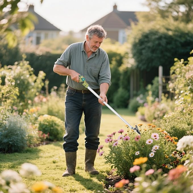 - [Lightweight Long Handle Tree Pruner] Crafted with a strong yet lightweight aluminum pole, this long reach pruner extends your reach to 32 inches while weighing only 1.12 lbs—It's a good alternative to loppers. While it is the same length as the traditional loppers, it is 3x lighter. Designed for one-handed use, it’s perfect for seniors, gardeners with limited mobility, or anyone wanting effortless pruning without fatigue. Significantly improving safety and convenience.