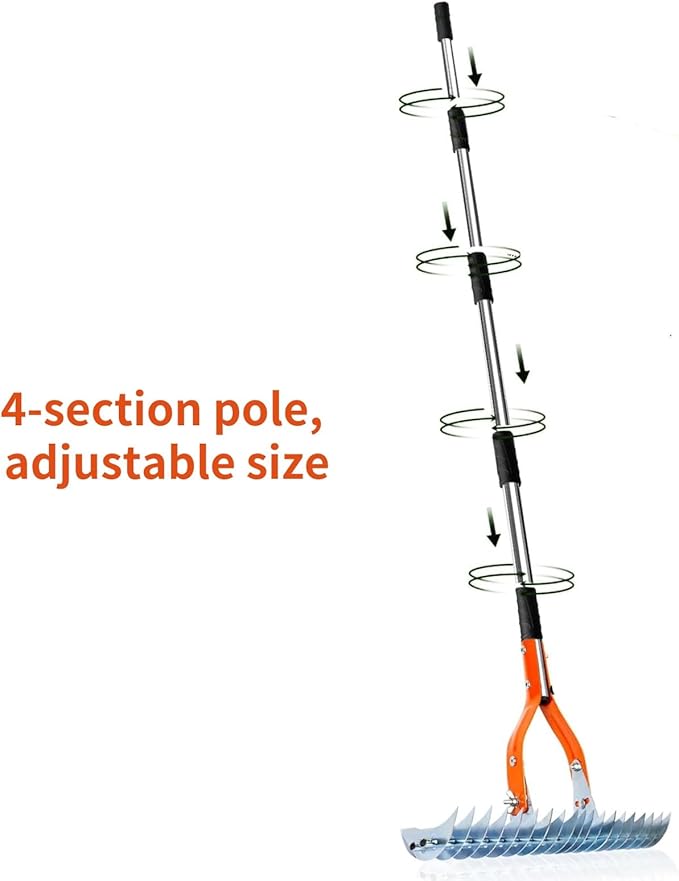 - Ergonomic Hhandle: Its length can be adjusted according to your needs, the ergonomically designed handle provides sufficient leverage, making it easy to clear dead grass and relieve your back strain,The pole of the rake head has a plastic lining, adding to its robustness, The tail of the pole is fitted with a rubber anti-slip sleeve, providing you with the comfortable experience
