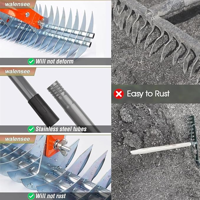 - Durable Construction: Crafted from high-quality stainless steel, this heavy-duty rake is built for long-lasting use, Treated with anti-rust and anti-corrosion coatings this thatch rake is sturdy enough to resist deformation or breakage