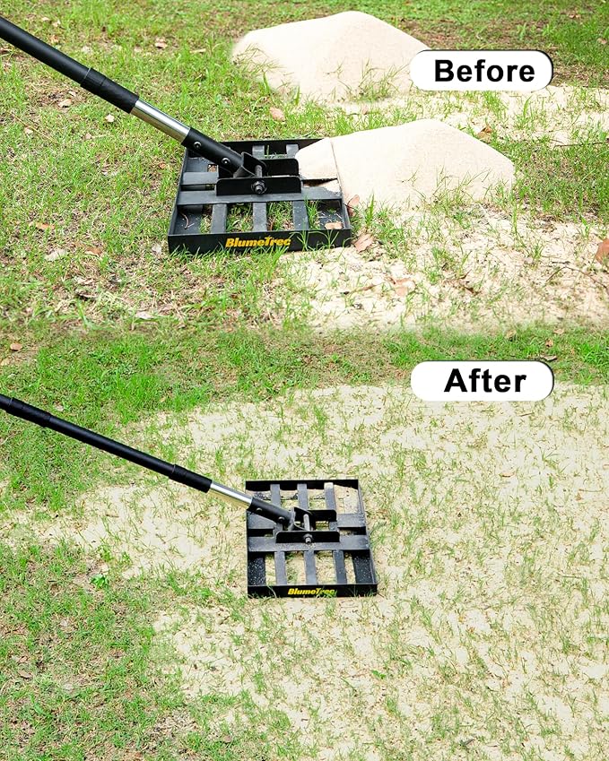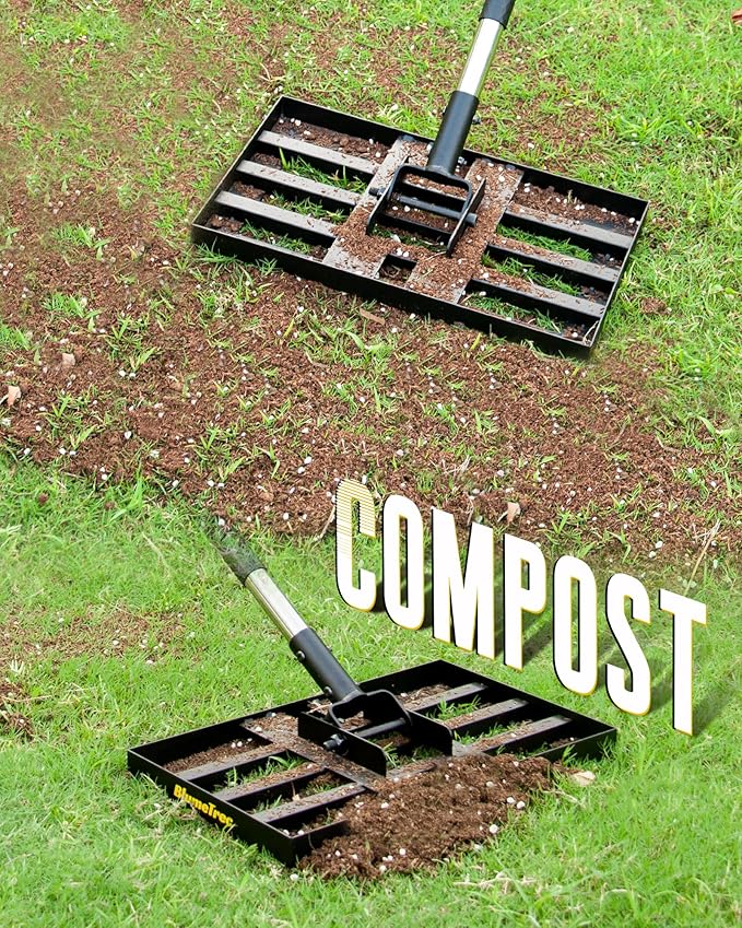 - Smooth Leveling for Multiple Outdoor Uses: This heavy-duty lawn leveling rake is ideal for flattening soil, sand, topsoil, compost, stones and gravel across lawns, yard, gardens, golf courses, farms, and sports fields. It evenly spreads topdressing materials, fills small low spots, and creates a smooth surface for seeding or planting. Perfect for regular lawn care and professional landscaping projects, it ensures an even surface that supports healthy lawn growth.