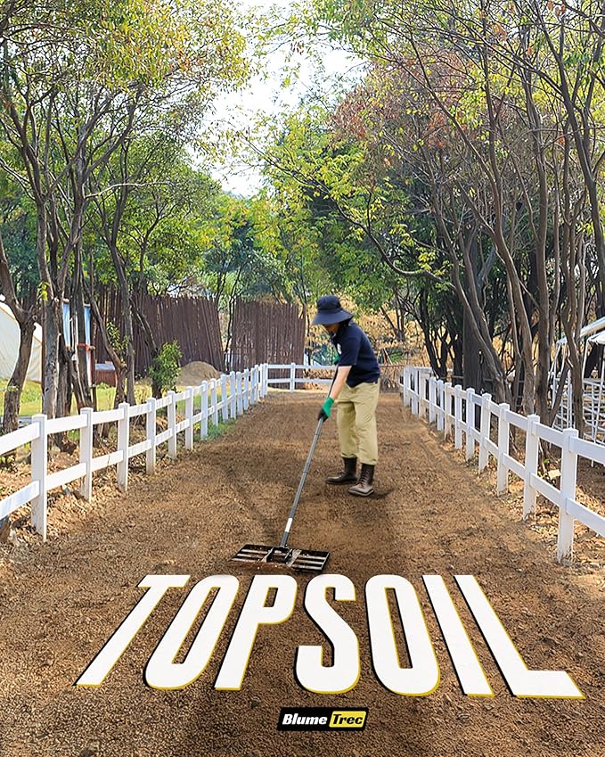 - Durable Construction with Premium Materials: Made from high grade steel, this topsoil spreader rake is extremely durable and rust-resistant for long-term outdoor use. Full welding technology strengthens the joints, ensuring they won't easily loosen or break over time. The powder-coated finish adds an extra layer of protection. Built to handle large landscaping jobs with ease, this tool maintains stable performance.