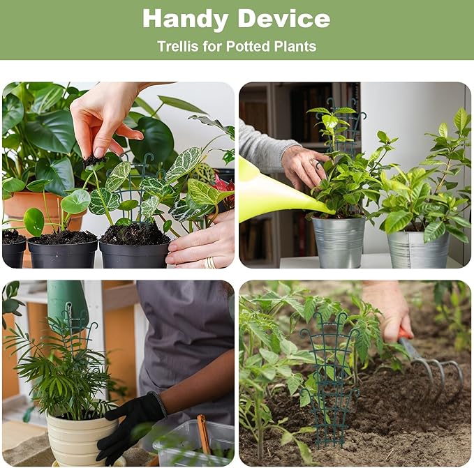 - 【Perfect Size】- 24 Pack trellis for potted plants measure 10" x 6.1", perfect size for potted climbing plants indoor; Can be stacked as the plant grows, super easy to use. Dark green color blends in well with plants.
