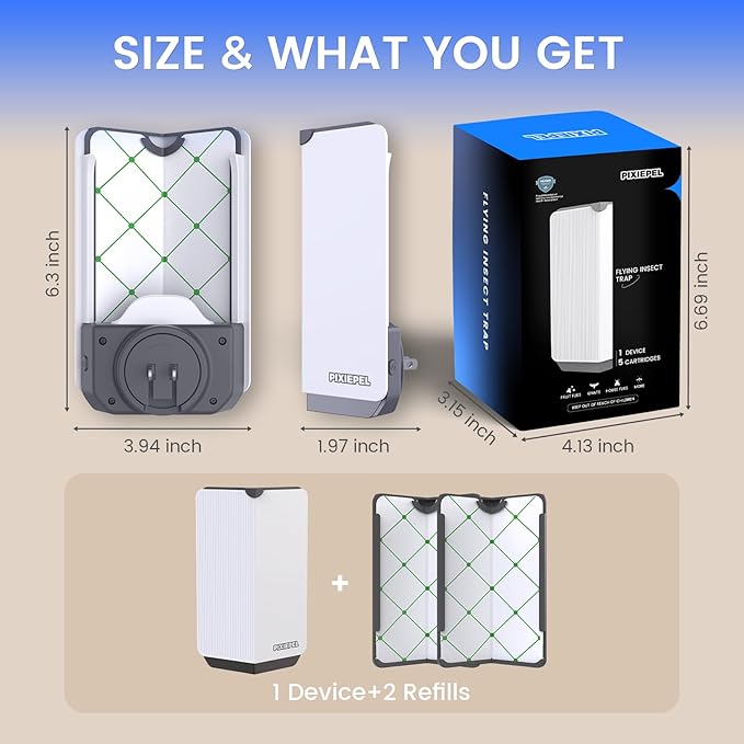 - 【Larger, Stronger Glue Boards】Equipped with upgraded glue boards that are larger in size and enhanced with stronger adhesive. Effectively captures fruit flies, gnats, houseflies, moths, and even small mosquitoes. Easy to install and replace.