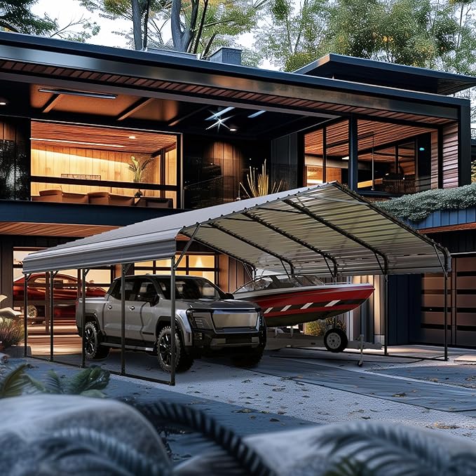 - 【Heavy-Duty Outdoor Metal Carport】 Unlike traditional carports with fabric covers, we’ve upgraded our heavy-duty carport canopy to feature a galvanized steel roof, enhancing its ability to withstand any weather conditions. Constructed with a heavy-duty galvanized steel roof and a powder-coated tube frame, our outdoor metal carport canopy is rust-resistant, solid, and sturdy.