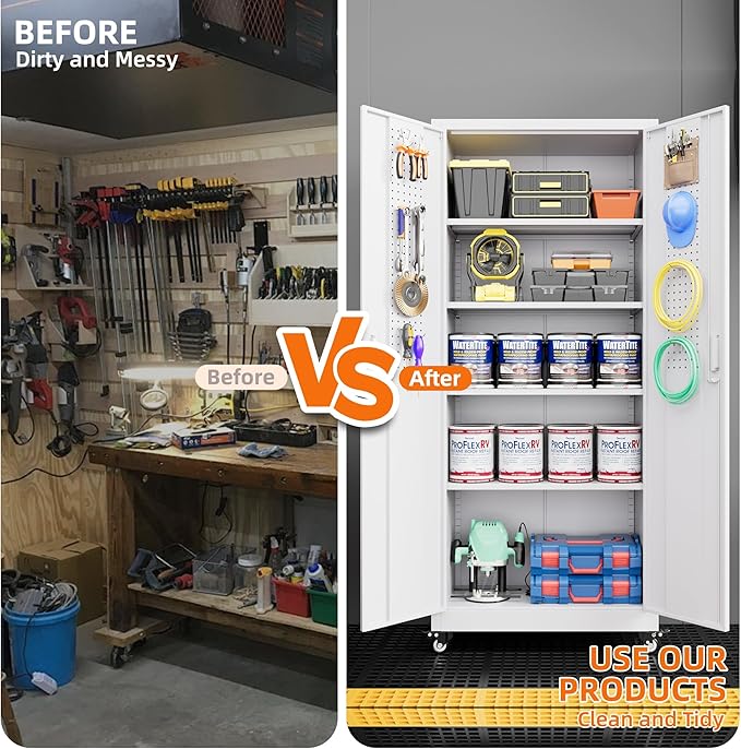 - Widely Use: This metal storaeg cabinet with wheels.The steel cabinet with doors and shelves can be used in garage, laundry, office or any place where additional storage is required.