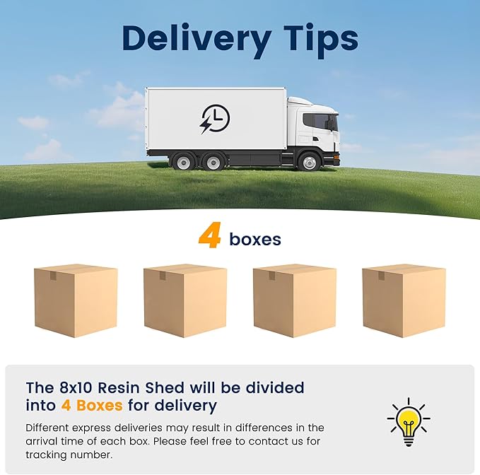 UDPATIO Storage Shed 8 x 10 FT, Resin Outdoor Garden Sheds with Floor Plastic Patio Outdoor Storage with Lockable Door for Tool, Bike, Garbage Gray White