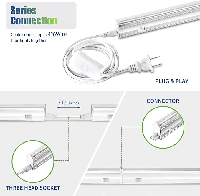 - What you get: 4 x T5 grow lights, 1 x US ETL certified power cord with switch (59 inches), 3 x connecting wires (31.5 inches), 4 x accessory bags, 8 x hanging rings, 8 x screws, 9 x cable ties, 1 x Velcro cable tie (78 inches), 1 x instruction manual