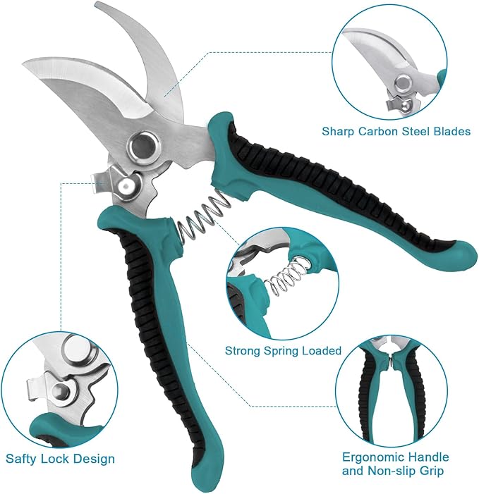 - Ease to Use: Each gardening tool is designed with a practical functionality, making common tasks efficient for both beginners and seasoned gardeners. The transplanter helps in moving plants and measuring the depth you want to dig, while the pruning shears are sharp and easy to maneuver for trimming and shaping. The gardening trowel is suitable for planting, transplanting, or digging small holes, and the hand rake loosens soil and removes debris