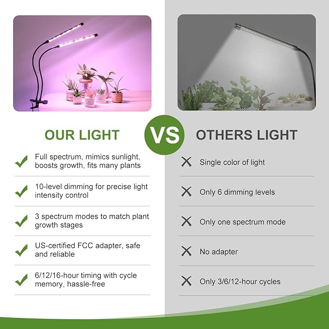 - 【Upgraded Timer Function for Hassle-Free Plant Care】Advanced timer with 6/12/16-hour intervalsCircular memory ensures consistent daily light duration. Note: Timer resets if powered off.