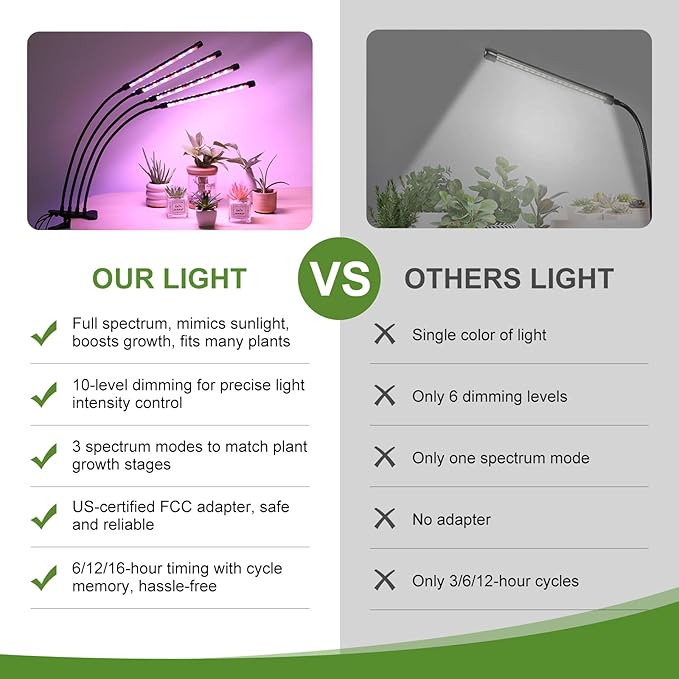 - 【Upgraded Timer Function for Hassle-Free Plant Care】Advanced timer with 6/12/16-hour intervalsCircular memory ensures consistent daily light duration. Note: Timer resets if powered off.
