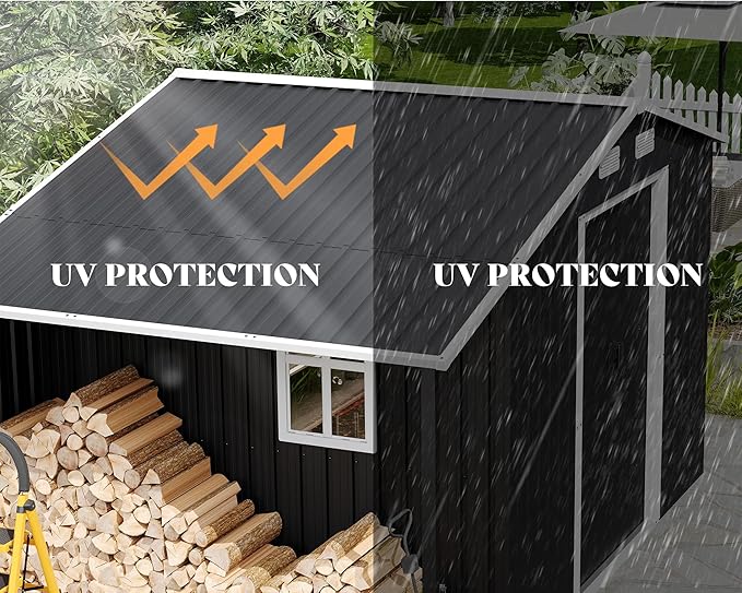 - Weather-Resistant Galvanized Steel Shed: Constructed with 0.25 mm galvanized steel panels, rust-resistant coating, and sturdy framing, offering year-round protection from rain, snow, and harsh UV rays