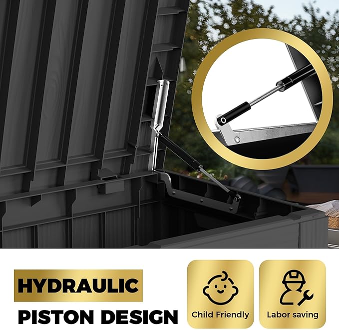 - Material: The patio outdoor storage box is made of the latest high-quality resin material, which makes this patio deck storage box waterproof,UV-resistant, anti-fading, and anti-bending protection, suitable for long-term outdoor use.