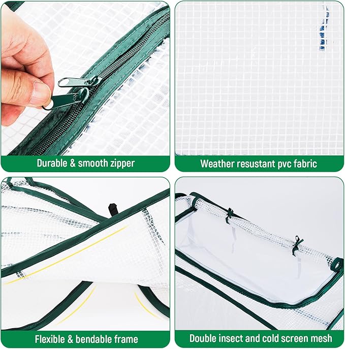 - 【Multi-Functional Cover】A double-layer zipper window ( the top is the PVC, the bottom is the mesh) is added to the top to ideal for early-spring insulation, watering, and ventilation while keeping pests and small animals out.