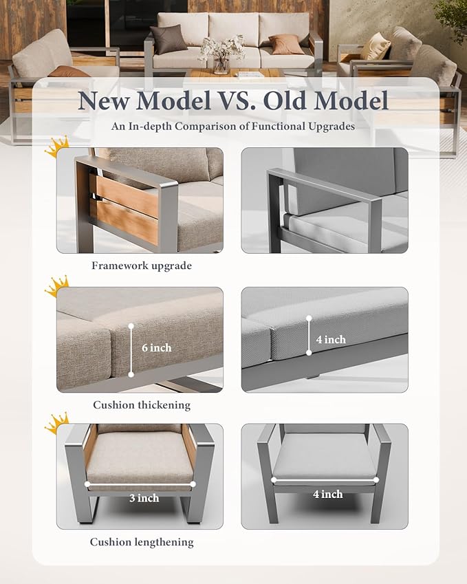 - ⛱️【Rust-resistant All-Aluminum Frame】Crafted with a powder-coated aluminum frame, stainless steel screws, this outdoor furniture set is resistant to rain, snow, and sun exposure, it's water-resistant, and rust-resistant so you can feel safe leaving this set outdoors no matter the season. Its lightweight design allows for effortless movement and repositioning. Perfectly fitting with your poolside area, backyard, poolside, balcony, garden and deck.