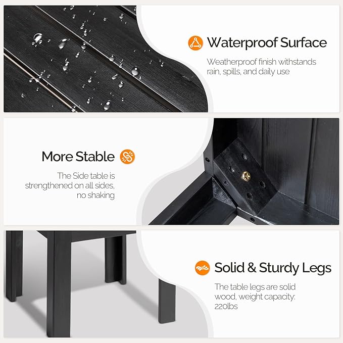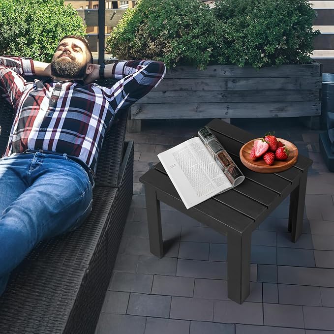 VINGLI Outdoor Adirondack Side Table, 18" Square Thick Wooden Coffee Table, Patio Side Table Conversation End Table for Patio Backyard, Garden, Poolside and Balcony (Black)