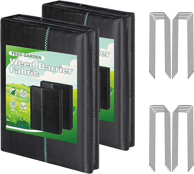 FEED GARDEN 3FT x 100FT Landscape Fabric Weed Barrier Fabric, Heavy Duty Ground Cover Geotextile Fabric for Gardening, with 20 U-Shaped Stakes (2 Pack 3x50FT)