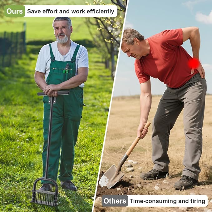 - Self-cleaning-The aerator lawn tool is designed with a double spring base plate that automatically strips the soil from the spike teeth when the end of the aerator is pulled out, without damaging the lawn, for effective yard aerator