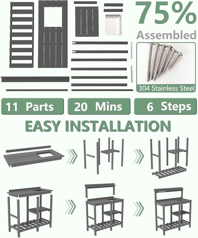 - Quick & Hassle-Free Assembly: Setting up your potting bench is a breeze! With clear instructions and all hardware included, you can assemble this sturdy gardening table in just 20 minutes. Enjoy a seamless setup and start gardening right away.