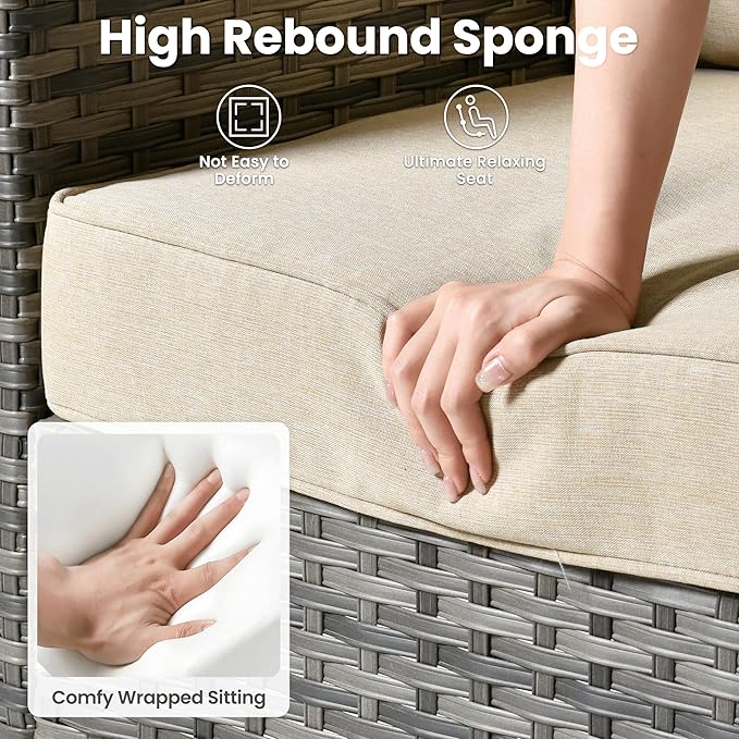 - Premium Wicker Rattan: Our modern outdoor sofa set is designed with a classic natural rattan look, all-weather sofa made of sturdy rust-resistant steel construction, providing strong support and balance for the patio seats