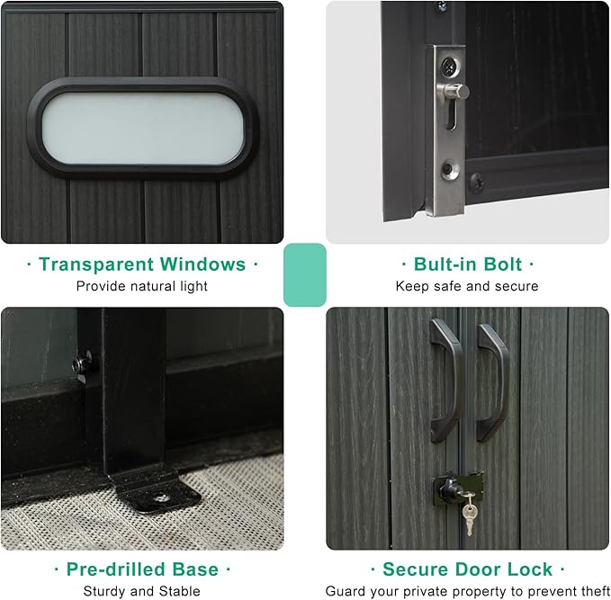 - Easy to Assemble - With clear instructions and labeled parts, this large outdoors shed assembles quickly (recommended 2-3 people). The lightweight yet sturdy resin panels make setup simpler than heavy metal sheds while offering comparable durability.