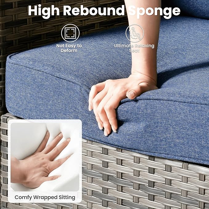 - Thickened Cushions: High-density foam cushions provide superior comfort, while the removable cushion covers are waterproof, weather resistant, wear resistant, easy to clean, perfect for easy maintenance in any outdoor setting