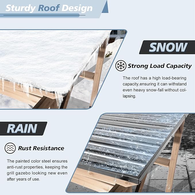 - BROAD APPLICATIONS — This wooden grill shelter is ideal for various outdoor grilling scenarios, including backyard parties, family patio gatherings, poolside bashes, and even commercial booths. It offers protection from the elements while enhancing the style of any setting, making it the perfect choice for all your outdoor grilling needs.