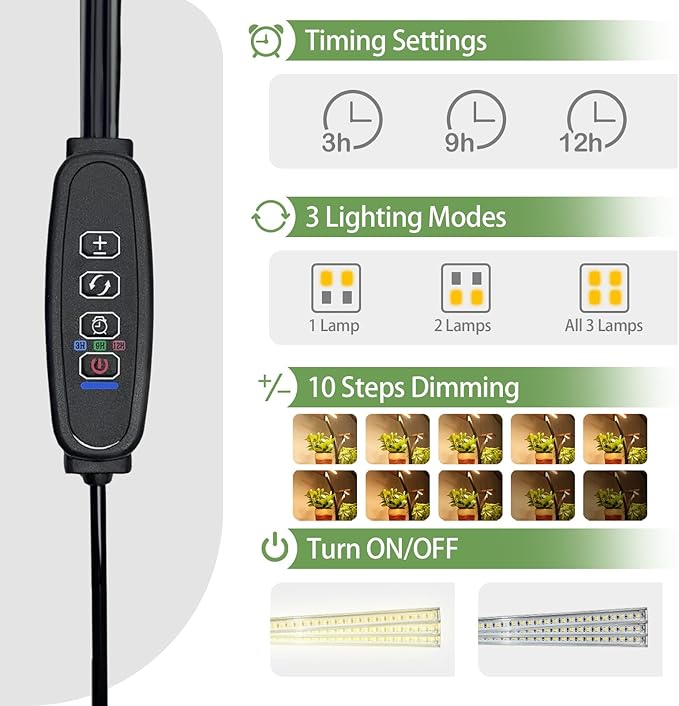 - 【Plant Stand with Grow Lights】No sunlight indoor? No problem! we have equipped this indoor plant shelf with full-spectrum, timer-enabled and multiple adjustable grow lights.Solves the problem of insufficient indoor sunlight,ensures plants get ample light to grow healthily, ideal for creating a green corner indoors