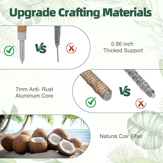 - 【Handcrafted & Eco-Friendly Material】: The sturdy aluminum core wrapped in coco coir and unique branching structure deliver a handmade or artisanal quality! Constructed from natural coco coir, offering a sustainable organic environment for the plant to adhere to and grow!