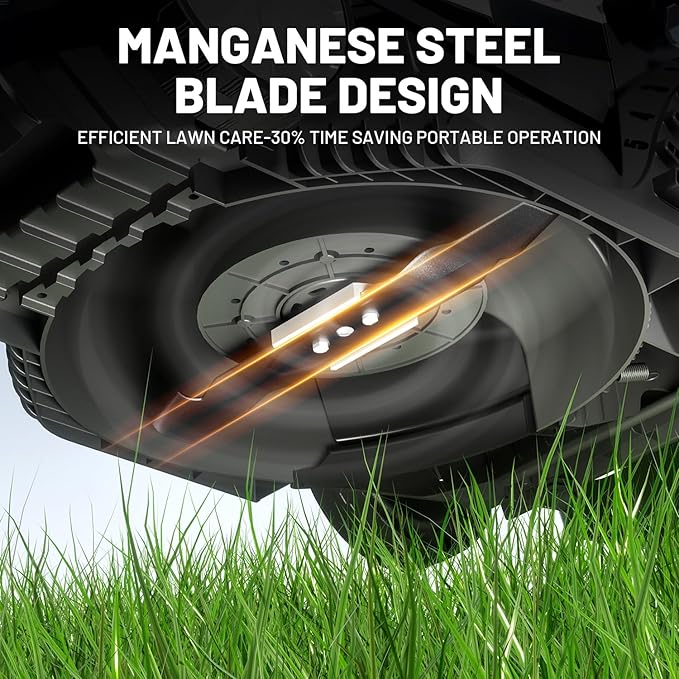 - [High-performance motor]:The battery powered lawn mower is powered by a high-performance motor, which is low-maintenance, low-noise, and powerful compared to conventional motors, ensuring maximum performance and longer, smoother running time.