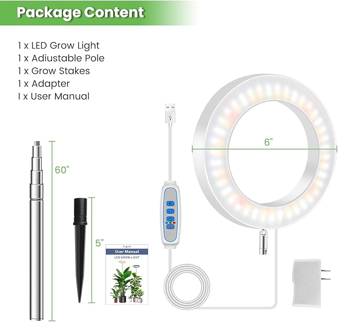 - Full Spectrum Grow Light: Compact grow light features a 6.3 inch diameter. Also, It is designed with 80 high efficiency diode LED (5V 3A adapter) to provide light source that is 30% brighter.