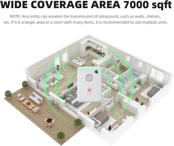 - Wide Coverage Area: Designed to cover large spaces, this repeller protects up to 5,000 sq. ft. Ideal for attics, garages, barns, and other areas where bats may invade, ensuring complete bat prevention throughout your property