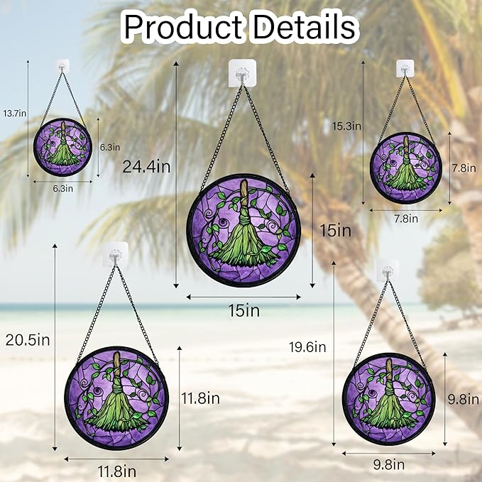 Stained Glass Window Hanging - Halloween Decorations Witch Magic Broom Suncatcher for Doors Garden Indoor Funny Spooky Sun Catchers Gothic Decor Horror Gifts for Women Men Friend 15 in