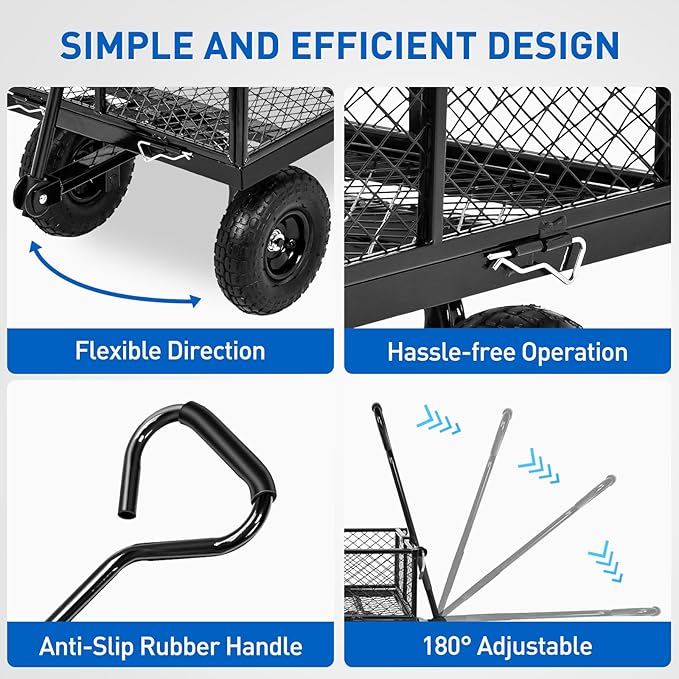 - 2-in-1 Convertible Design – Switch between a fenced cart and flatbed for different loads, with a spacious 7.69 cu. ft. cargo area